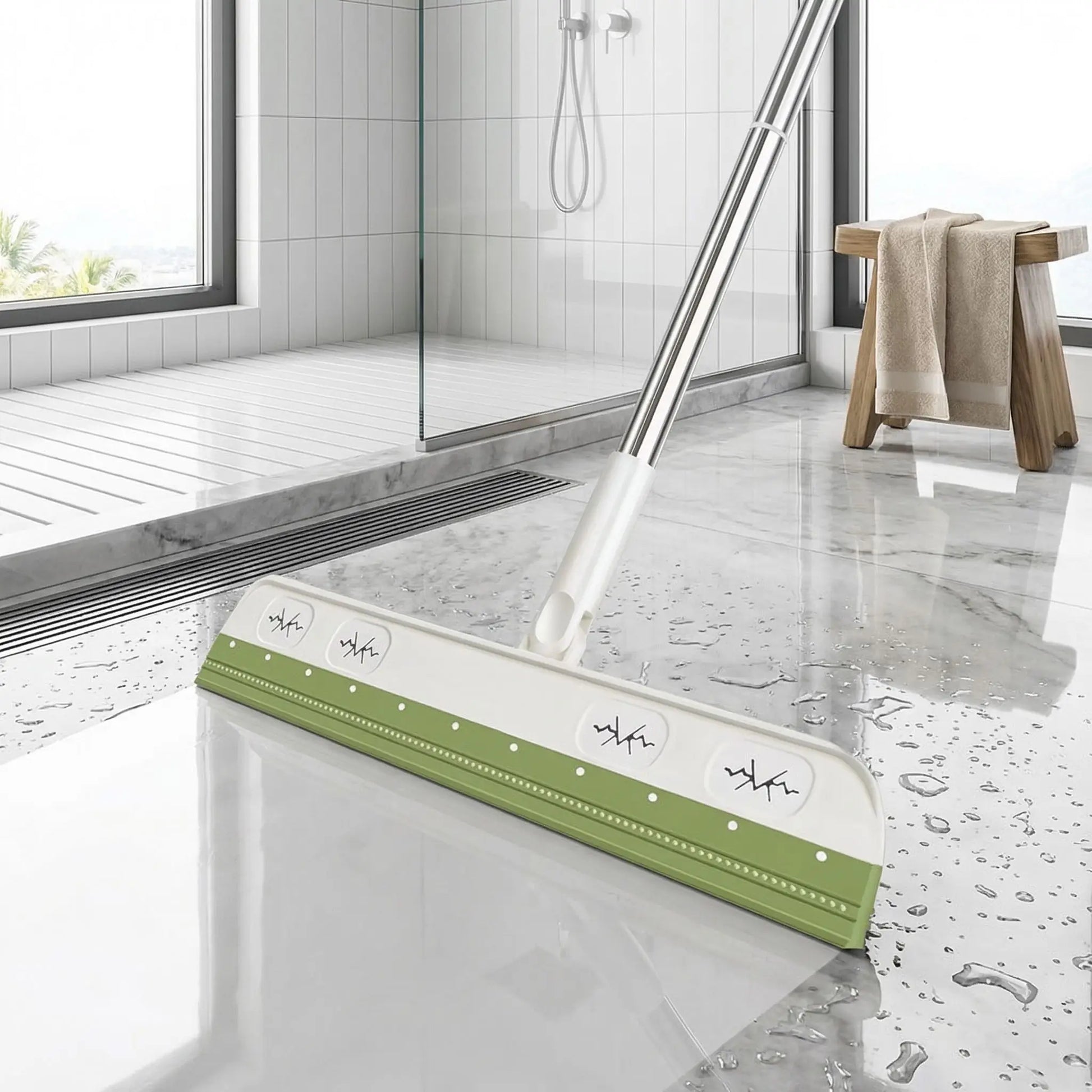 Pourquoi encombrer vos placards avec dix outils différents ? Cette raclette sol devient votre alliée partout dans la maison. Dans la cuisine, elle chasse l'eau après avoir lavé le sol. Dans la salle de bain, elle sèche le carrelage après la douche et évite la moisissure.